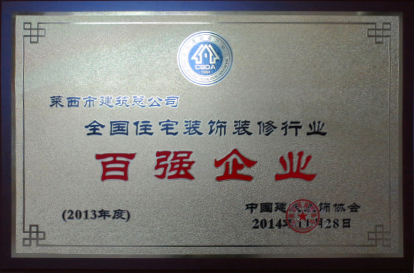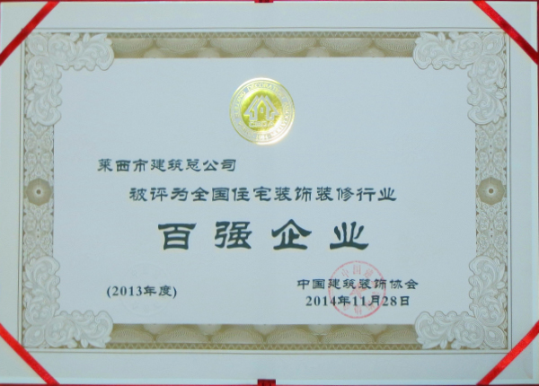 我公司被評(píng)為2013年度全國(guó)住宅裝飾裝修行業(yè)百?gòu)?qiáng)企業(yè)