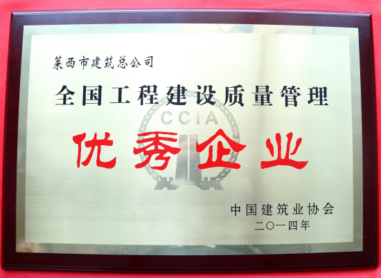 我公司再次榮獲全國(guó)工程建設(shè)質(zhì)量管理優(yōu)秀企業(yè)