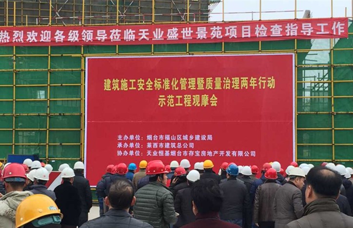 觀摩會上,煙臺市、區(qū)領(lǐng)導(dǎo)對天業(yè)盛世景苑工程的精品做法、施工現(xiàn)場管理、質(zhì)量管理、綠色施工給予了高度評價(jià),特別對現(xiàn)場垃圾處理體系、模板支撐體系、樣板展示給予了充分肯定,并決定在福山區(qū)今后工程施工中推廣應(yīng)用。