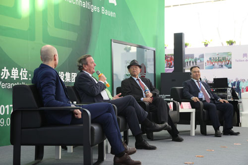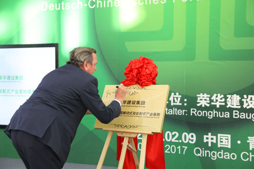 德國前總理施羅德先生應(yīng)榮華建設(shè)集團(tuán)和中德生態(tài)園管委的邀請于2月8日開始對青島為期四天的訪問之旅,出席由我集團(tuán)主辦的中德可持續(xù)建設(shè)論壇,并為集團(tuán)的被動(dòng)房及裝配式產(chǎn)業(yè)基地揭牌,集團(tuán)董事長孫涌同志全程陪同。集團(tuán)總裁趙成福、副總裁張行良、總裁助理周兵一、副總工程師楊自統(tǒng)、三公司總經(jīng)理于永剛、中德聯(lián)合被動(dòng)房有限公司總經(jīng)理聶建衛(wèi)一起參加。