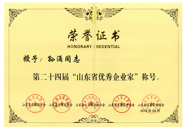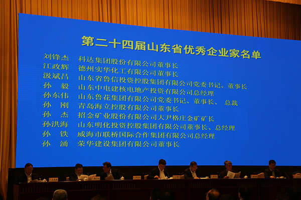 中國企業(yè)聯(lián)合會常務(wù)副會長兼理事長朱宏任、山東省企業(yè)聯(lián)合會名譽(yù)會長李書紳、淄博市委副書記、市長于海田、山東省經(jīng)信委副主任王萬良等領(lǐng)導(dǎo)出席會議。會議由山東省經(jīng)信委副主任王萬良主持,大會并對“第二十四屆山東省優(yōu)秀企業(yè)家”進(jìn)行了表彰。董事長孫涌被授予“第二十四屆山東省優(yōu)秀企業(yè)家”榮譽(yù)稱號并上臺領(lǐng)獎。本屆“山東省優(yōu)秀企業(yè)家”評選活動旨在深入貫徹中共中央、國務(wù)院《關(guān)于營造企業(yè)家健康成長環(huán)境弘揚(yáng)優(yōu)秀企業(yè)家精神更好發(fā)揮企業(yè)家作用的意見》文件精神,積極落實(shí)省委、省政府實(shí)施新舊動能轉(zhuǎn)換重大工程戰(zhàn)略部署,不斷激發(fā)全省廣大企業(yè)家創(chuàng)新創(chuàng)業(yè)的積極性、主動性和創(chuàng)造性,大力弘揚(yáng)企業(yè)家創(chuàng)新精神和工匠精神,充分發(fā)揮優(yōu)秀企業(yè)家示范引領(lǐng)作用。