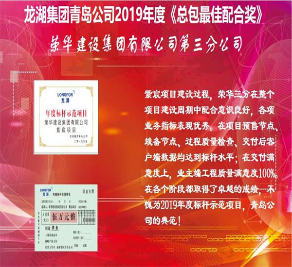 2020年4月18日,龍湖集團青島公司召開了2019年度供應商網(wǎng)絡表彰大會,有工程總承包、專業(yè)分包、監(jiān)理等160多家企業(yè),共447人參加會議。龍湖集團青島公司總經(jīng)理彭江、副總經(jīng)理杜吉勝、工程職能總呂忠瓏、成本職能總王仕林出席本次網(wǎng)絡表彰大會。 會上,龍湖集團對我集團一直以來對龍湖集團的支持和配合給予了高度評價和贊揚,并感謝我集團作為優(yōu)秀同路人能夠與龍湖集團攜手共進,取得了一個又一個優(yōu)異成績。同時祝愿我們兩家集團能夠加大合作,共創(chuàng)輝煌。 本次供應商網(wǎng)絡表彰大會對2019年度的優(yōu)秀分供方進行了評選。我集團一舉拿下了“2019年度《地區(qū)戰(zhàn)略(總包)》、2019年度《總包最佳配合獎》、2019年度《年度標桿項目獎》、2019年度《金牌項目經(jīng)理》”等四大獎項。