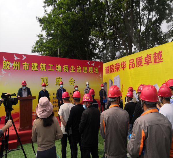 2020年5月22日,膠州市建筑工地?fù)P塵治理現(xiàn)場(chǎng)觀摩會(huì)在六公司孫德洲項(xiàng)目部施工的公園大道項(xiàng)目成功召開。膠州市城鄉(xiāng)建設(shè)局王世梅副局長、安監(jiān)站劉敬玉站長、質(zhì)監(jiān)站于清正站長、市政質(zhì)安站張鵬程站長、萬科房地產(chǎn)有限公司副總經(jīng)理卜令雨等領(lǐng)導(dǎo)參會(huì),集團(tuán)公司副總裁周兵一出席并發(fā)表講話。膠州市安監(jiān)站、質(zhì)監(jiān)站監(jiān)督執(zhí)法人員以及膠州市在建工程公司負(fù)責(zé)人、項(xiàng)目經(jīng)理、安全員共計(jì)230余人參與觀摩。