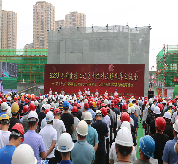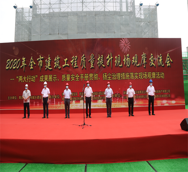 6月30日上午,2020年全市建筑工程質(zhì)量提升現(xiàn)場觀摩交流會(huì)暨“兩大行動(dòng)”成果展示、質(zhì)量安全手冊貫徹、揚(yáng)塵治理措施落實(shí)現(xiàn)場觀摩會(huì)在李滄區(qū)和西海岸新區(qū)同步召開,六公司陳顯峰項(xiàng)目部施工的萬科新都會(huì)二期項(xiàng)目成為觀摩會(huì)場。市住建局局長陳勇、副局長劉玉勇,李滄區(qū)委常委、副區(qū)長劉學(xué)輝,李滄區(qū)建設(shè)局局長周誠等市及各區(qū)市住建局主管部門、全市建筑工程質(zhì)量監(jiān)督機(jī)構(gòu)和部門建設(shè)、施工、監(jiān)理企業(yè)分管領(lǐng)導(dǎo)和質(zhì)量技術(shù)部門負(fù)責(zé)人、項(xiàng)目負(fù)責(zé)人按照疫情防控要求分時(shí)間,分批次參加了現(xiàn)場會(huì)。集團(tuán)公司董事長孫涌出席主會(huì)場觀摩會(huì)并致辭,副總裁周兵一、副總裁兼北方公司總經(jīng)理劉世海、六分公司總經(jīng)理丁秀爭陪同參會(huì)。