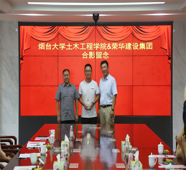 座談會(huì)上還探討如何進(jìn)一步加強(qiáng)校企合作,合力培養(yǎng)學(xué)生的創(chuàng)新實(shí)踐能力和職業(yè)精神。董事長孫涌與煙臺(tái)大學(xué)土木工程學(xué)院黨總支書記李軍共同為優(yōu)秀校友周馳頒發(fā)煙臺(tái)大學(xué)土木工程學(xué)院“未之星”獎(jiǎng)杯。