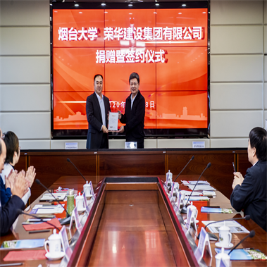 11月18日上午,煙臺大學(xué)、榮華建設(shè)集團(tuán)有限公司捐贈暨簽約儀式舉行。榮華建設(shè)集團(tuán)通過青島市慈善總會向煙臺大學(xué)捐贈100萬元,設(shè)立“煙臺大學(xué)榮華教育發(fā)展基金”,用于榮華希望獎學(xué)金、榮華創(chuàng)新勵志獎學(xué)金、榮華創(chuàng)新創(chuàng)業(yè)獎學(xué)金等。青島市慈善總會會長王偉,榮華建設(shè)集團(tuán)黨委書記、董事長孫涌,煙臺大學(xué)黨委書記、教育發(fā)展基金會理事長張偉出席捐贈儀式,煙臺大學(xué)副校長郝曙光主持。