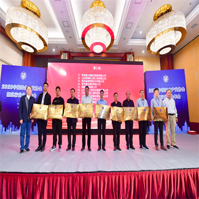 會(huì)上,榮華建設(shè)集團(tuán)有限公司榮獲2020年中國安全產(chǎn)業(yè)建筑行業(yè)安全生產(chǎn)標(biāo)準(zhǔn)化企業(yè);六公司張少杰項(xiàng)目部承建的海信國際中心項(xiàng)目榮獲中國安全產(chǎn)業(yè)建筑行業(yè)安全生產(chǎn)標(biāo)準(zhǔn)化項(xiàng)目;四公司徐德峰經(jīng)理榮獲“2020年中國安全產(chǎn)業(yè)建筑行業(yè)安全生產(chǎn)標(biāo)準(zhǔn)化帶頭人”稱號。集團(tuán)公司周兵一副總裁及六公司張少杰經(jīng)理分別上臺(tái)領(lǐng)獎(jiǎng)。