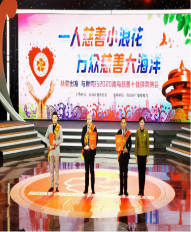一人慈善小浪花,萬眾慈善大海洋。1月7日下午,由青島市慈善總會(huì)主辦的2020年度“青島市慈善十佳”頒獎(jiǎng)晚會(huì)在青島電視臺(tái)800平米演播廳舉行,晚會(huì)對(duì)2020年度在青島慈善公益領(lǐng)域作出突出貢獻(xiàn)的單位、個(gè)人和項(xiàng)目進(jìn)行表彰。集團(tuán)公司榮獲“2020青島慈善十佳”和“抗擊新冠肺炎疫情捐贈(zèng)貢獻(xiàn)獎(jiǎng)”。青島市人大常委會(huì)副主任劉圣珍、市政協(xié)副主席卞建平、市慈善總會(huì)會(huì)長王偉出席活動(dòng)并為獲獎(jiǎng)單位、個(gè)人和慈善項(xiàng)目頒獎(jiǎng)。集團(tuán)公司總裁趙成福同志上臺(tái)領(lǐng)獎(jiǎng)并接受電視臺(tái)采訪。