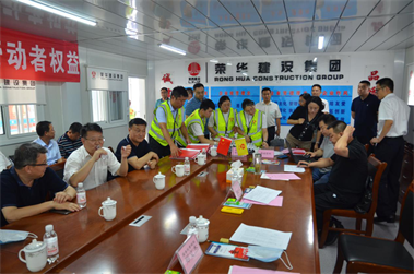 2021年7月12日,國務(wù)院人力資源社會保障部勞動保障檢查局副處長方繼興、重慶市勞動保障監(jiān)察總隊總隊長鄭文杰一行蒞臨我公司實訓(xùn)中心項目進(jìn)行四項制度專項檢查。省人社廳二級巡視員徐國均,省人社廳勞動監(jiān)察處處長張成仙,市委組織部副部長、市人社局局長胡義瑛,市住建局副局長劉玉勇,黃島區(qū)人社局局長曲波、黃島區(qū)住建局局長豐彥,我集團(tuán)公司副總裁周兵一、三公司總經(jīng)理于永剛的陪同檢查。