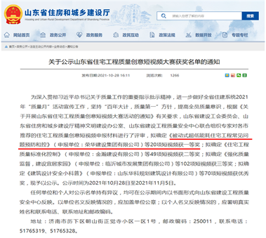 近日,山東省住房和城鄉(xiāng)建設(shè)廳公示了山東省住宅工程質(zhì)量創(chuàng)意短視頻大賽獲獎(jiǎng)名單,確定241項(xiàng)作品獲獎(jiǎng),其中三公司王淳項(xiàng)目部《被動(dòng)式超低能耗住宅工程常見問題預(yù)防和控制》榮獲一等獎(jiǎng)第一名,六公司劉輝項(xiàng)目部《精裝修交付滲漏開裂防控》獲得二等獎(jiǎng),榮華(青島)建設(shè)科技有限公司《裝配式混凝土建筑質(zhì)量控制要點(diǎn)》獲得三等獎(jiǎng)。