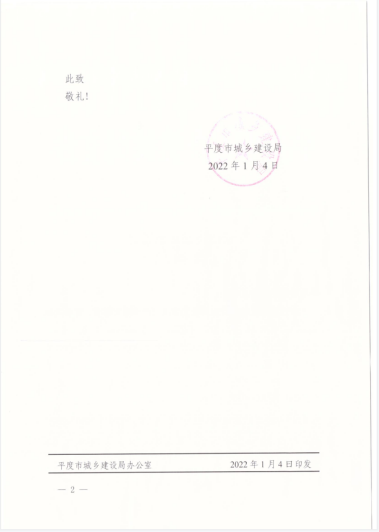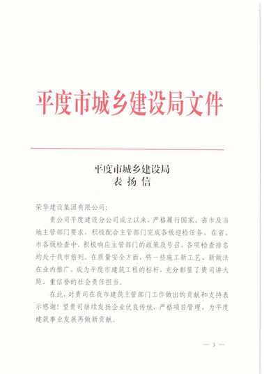 近日,集團(tuán)公司收到平度市城鄉(xiāng)建設(shè)局發(fā)來的表揚(yáng)信,對二公司提出表揚(yáng)。