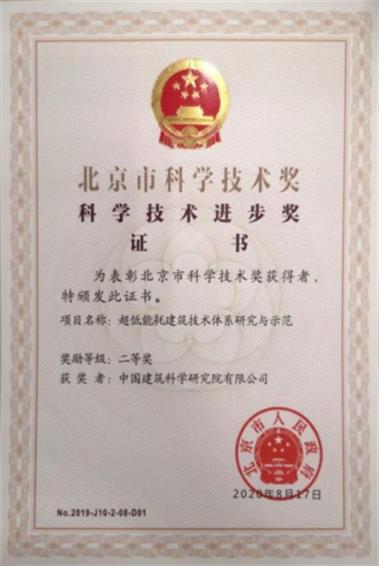 本次獎勵大會獲獎獎項包括北京市科學(xué)技術(shù)獎人物獎11項和北京市科學(xué)技術(shù)獎成果獎154項。我集團(tuán)聯(lián)合中國建筑科學(xué)研究院有限公司、北京市建筑設(shè)計研究院有限公司等完成的《超低能耗建筑技術(shù)體系研究與示范》獲得北京市科學(xué)技術(shù)進(jìn)步獎二等獎。