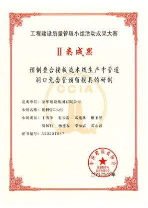 9月28日,中國建筑業(yè)協(xié)會公布2020年度工程建設(shè)優(yōu)秀質(zhì)量管理小組活動成果大賽名單,集團公司獲Ⅱ類成果1項:建科QC小組-預(yù)制疊合樓板流水線生產(chǎn)中管道洞口免套管預(yù)留模具的研制,獲Ⅲ類成果1項:中英創(chuàng)新產(chǎn)業(yè)園項目QC小組-提高被動式超低能耗建筑坡屋面保溫施工質(zhì)量。
